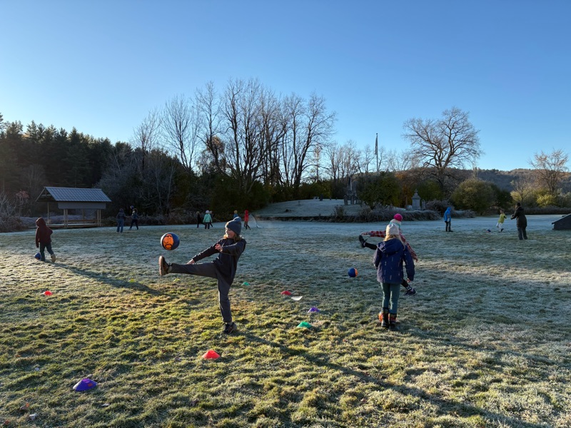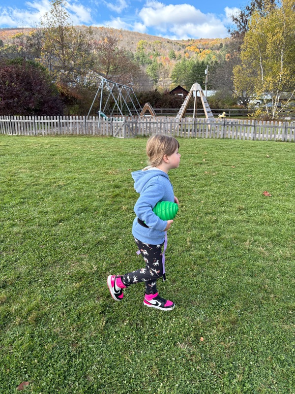 What you'll see below: frosty fall mornings, biking, soccer, football and the occasional dance party, rope climbing and cup stacking. A few bonus photos from the Moretown hike at Mad River Glen including some broom stick yoga at the summit.