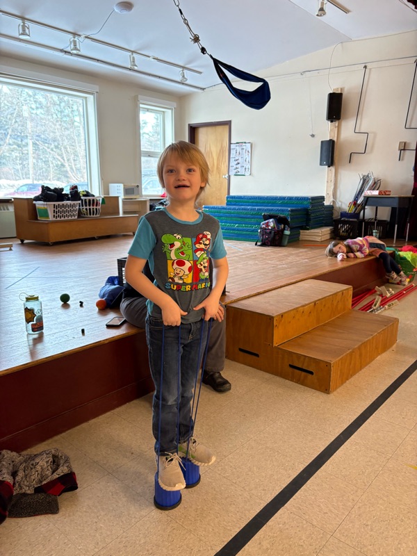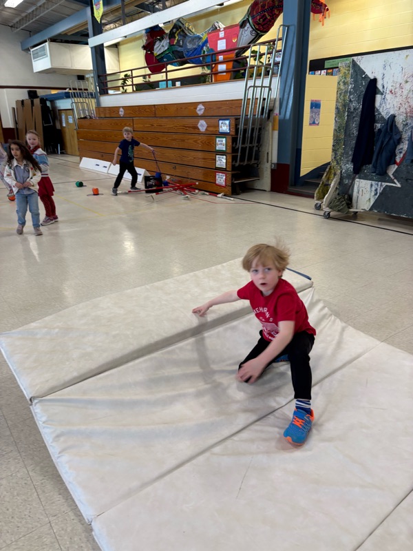 Waitsfield students have had two (grade 1-2), three (grade K), or four (grade 5-6) cross-country ski days and took some indoor time this week to introduce circus skills in anticipation of Troy Wunderle's artist-in-residence next week. We also threw in some Winter Olympic skills like beanbag biathlon, curling and quarter pipe for good measure. Next week, PE will be inside as we enter full circus mode with Troy.