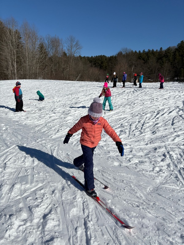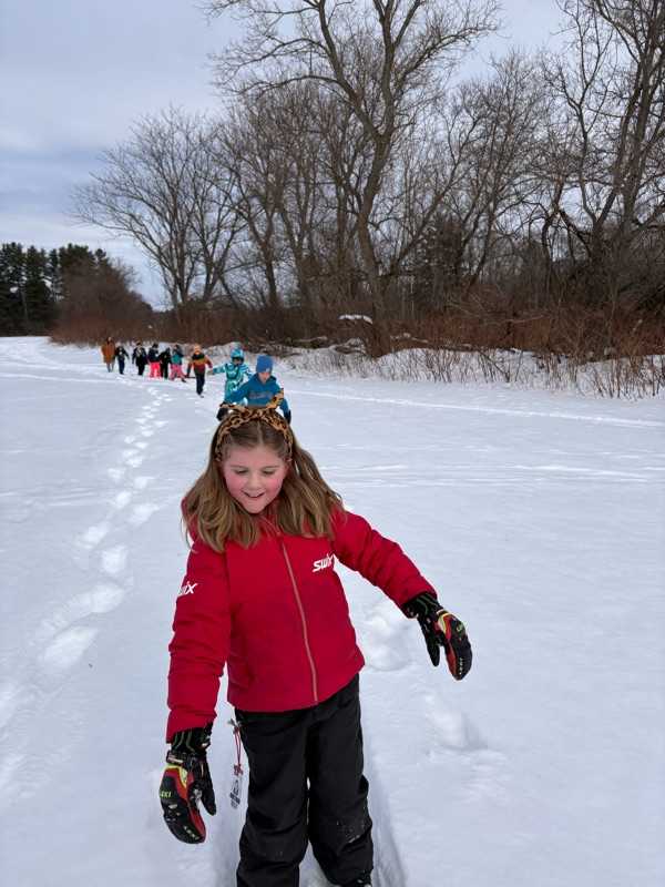 While Monday mornings have presented lots of sub-zero temps, three classes were able to get out cross-country skiing last Monday after the sun warmed things up a bit! Classes scheduled earlier in the day stayed inside for some Winter Olympics inspired station like beanbag curling, scooter bobsled and ice dancing. We plan to Nordic ski again with ALL grades on Monday, February 16.