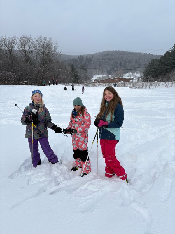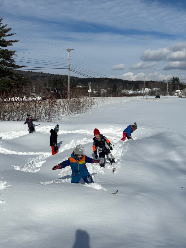 Kindergartners last week wrapped up their 3rd and final extended PE/Nordic ski class. And it was a powder day! That allowed us to explore some new and exciting territory like the pump track. (Some great photos below). It was fantastic to see the progress students made in managing their gear and maneuvering on two skinny skis. Thanks to all the adults who helped us tie boots!