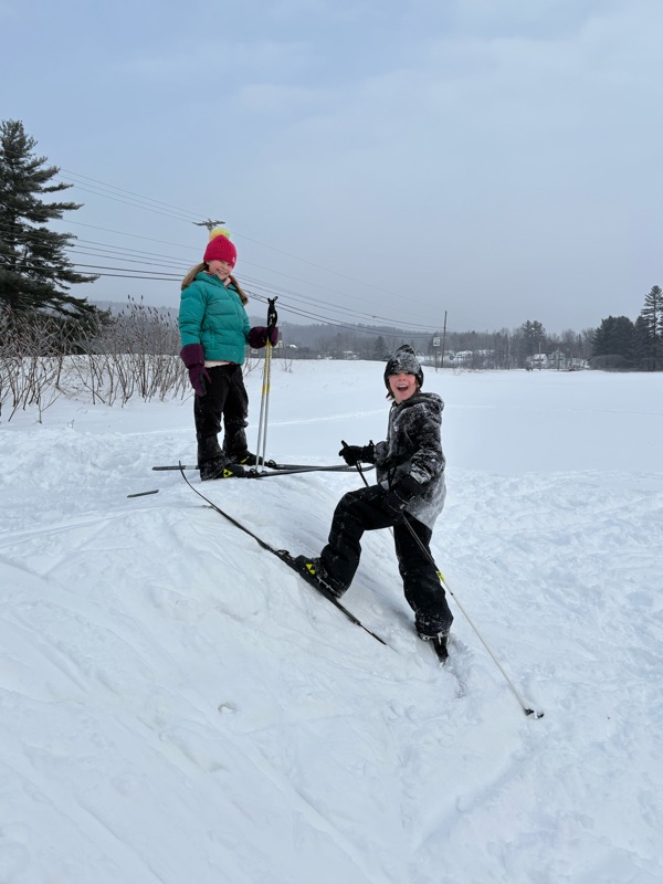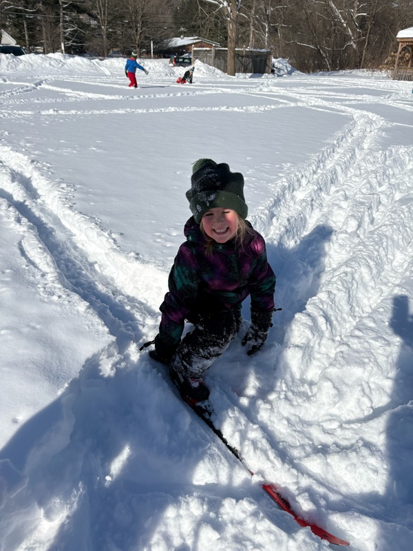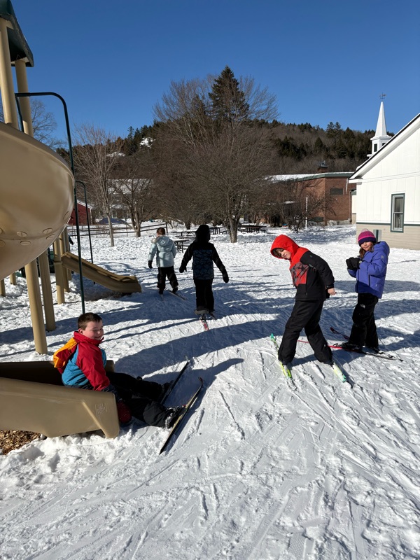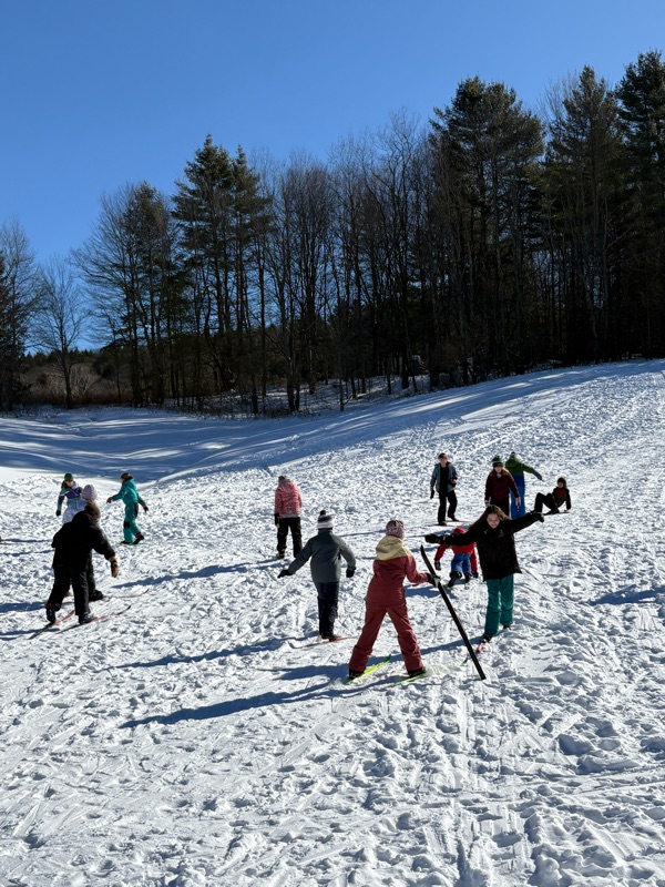 Third-sixth graders will have their fourth and final* Nordic ski PE class on Thursday. We'll be focusing on speed and agility. Yes, they can use poles now, though many have observed that it can be just as much fun without them! (Photos of fun below, some taken by Ms. V)